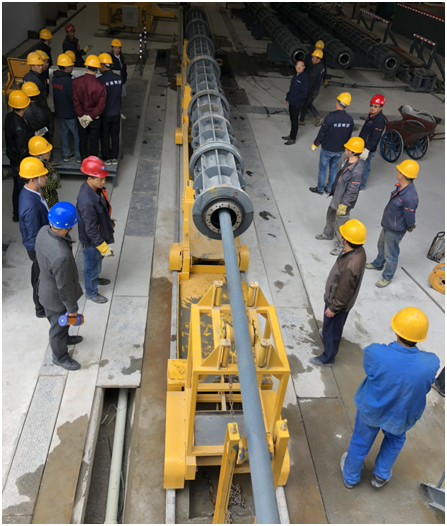2018年4月14日,國檢集團貴州公司總經理張桂紅、總顧問帥頌憲一行到貴州長通集團電力線路器材公司電桿分公司進行技術服務,機制山砂泵送混凝土電桿生產線首次試機成功!