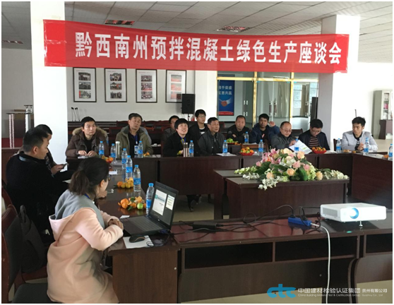 2017年3月15日,中國建材檢驗認(rèn)證集團(tuán)貴州有限公司與黔西南州預(yù)拌混凝土協(xié)會聯(lián)合開展了黔西南州預(yù)拌混凝土綠色生產(chǎn)座談會,會上中國建材檢驗認(rèn)證集團(tuán)貴州有限公司專家介紹了預(yù)拌混凝土行業(yè)發(fā)展的方向以及轉(zhuǎn)型升級的需求。